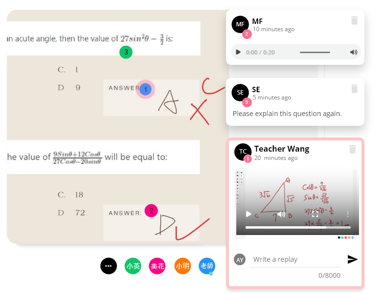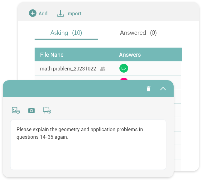 - Students can ask questions online easily by uploading screenshots or photos, and give a short description and send to teachers